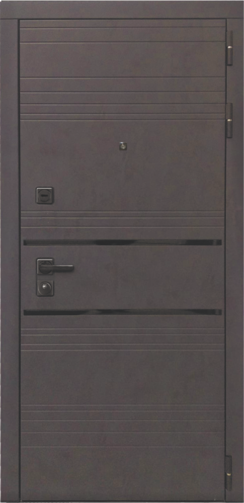 Внешняя отделка: МДФ панель 10мм, цвет бетон графит, + вставки декоративные черные (пластик). + Декоративные МДФ наличники.